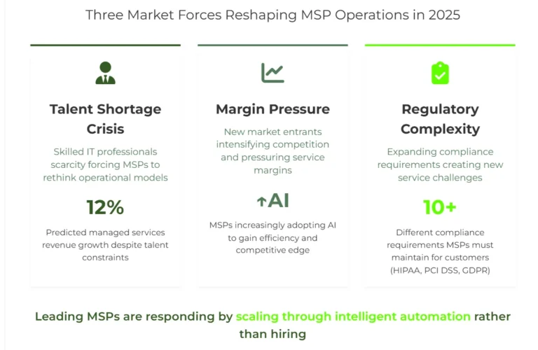 The talent shortage is forcing MSPs to rethink their operational models. Rather than scaling through hiring, leading MSPs are scaling through intelligent automation—using AI-powered tools to amplify the capabilities of existing teams.