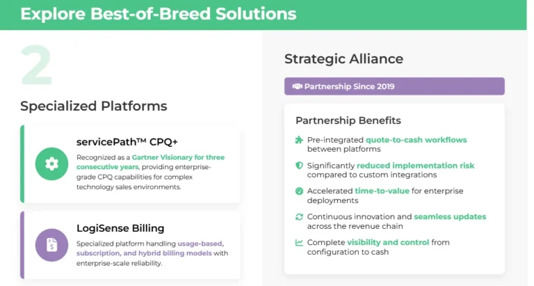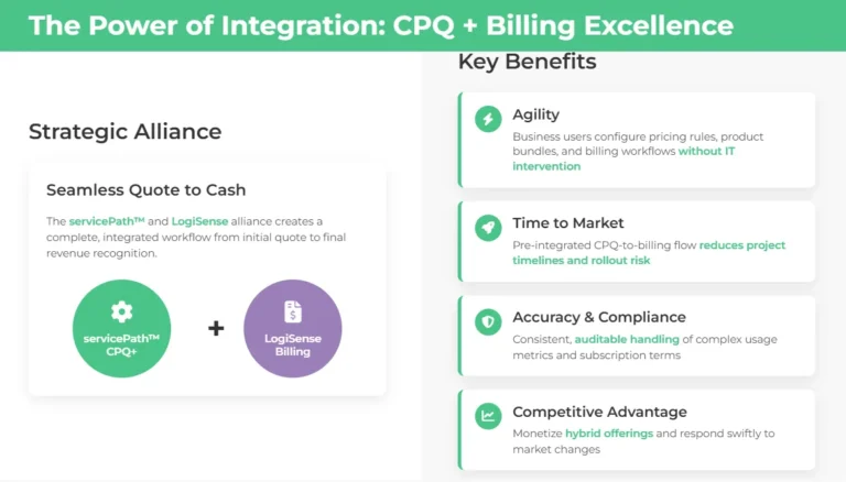Consider the servicePath™ and LogiSense alliance as a model for how specialized platforms can work together to deliver comprehensive quote-to-cash excellence: