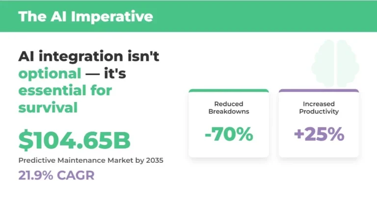 Field service quoting operates within a rapidly evolving maintenance ecosystem that’s undergoing fundamental digital transformation. The statistics paint a compelling picture of why AI integration isn’t optional—it’s essential for survival: