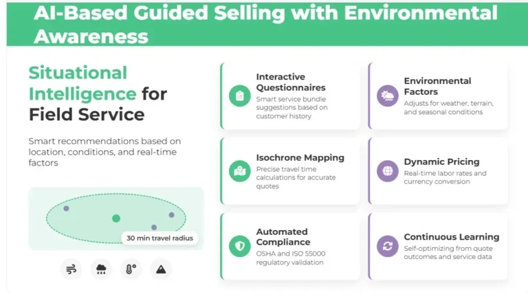 The integration of artificial intelligence into field service CPQ represents more than incremental improvement—it’s a complete reimagining of how service organizations approach customer interactions, pricing strategies, and operational efficiency. Based on real-world field service scenarios where technicians must deliver accurate quotes on-site while navigating complex asset conditions, regulatory requirements, and logistical constraints, AI augmentation delivers transformative capabilities: