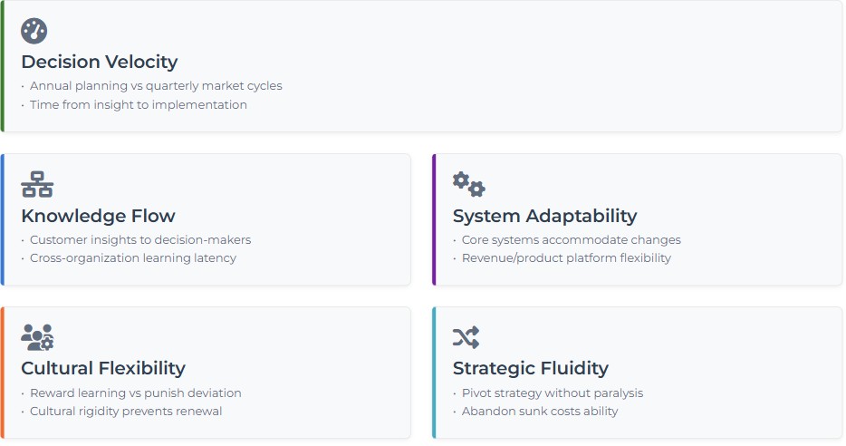 - Cultural Flexibility: Do your people and processes reward learning and adaptation, or do they punish deviation from established patterns? Cultural rigidity fossilizes organizations more effectively than technological limitations.