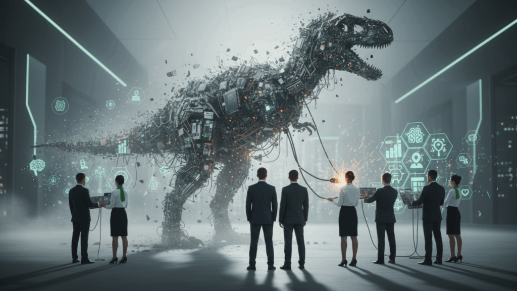 Getting dinosaured isn’t just a tech department problem—it’s a systems-level threat that hits every aspect of how you run your business. Organizations that try to modernize individual functions while leaving others static create dangerous asymmetries that eventually drag the entire enterprise toward obsolescence.