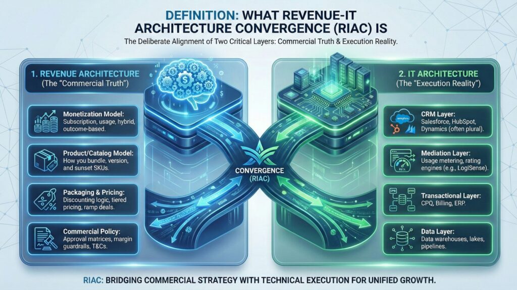 Revenue-IT Architecture Convergence (RIAC) is the deliberate alignment of two critical layers: