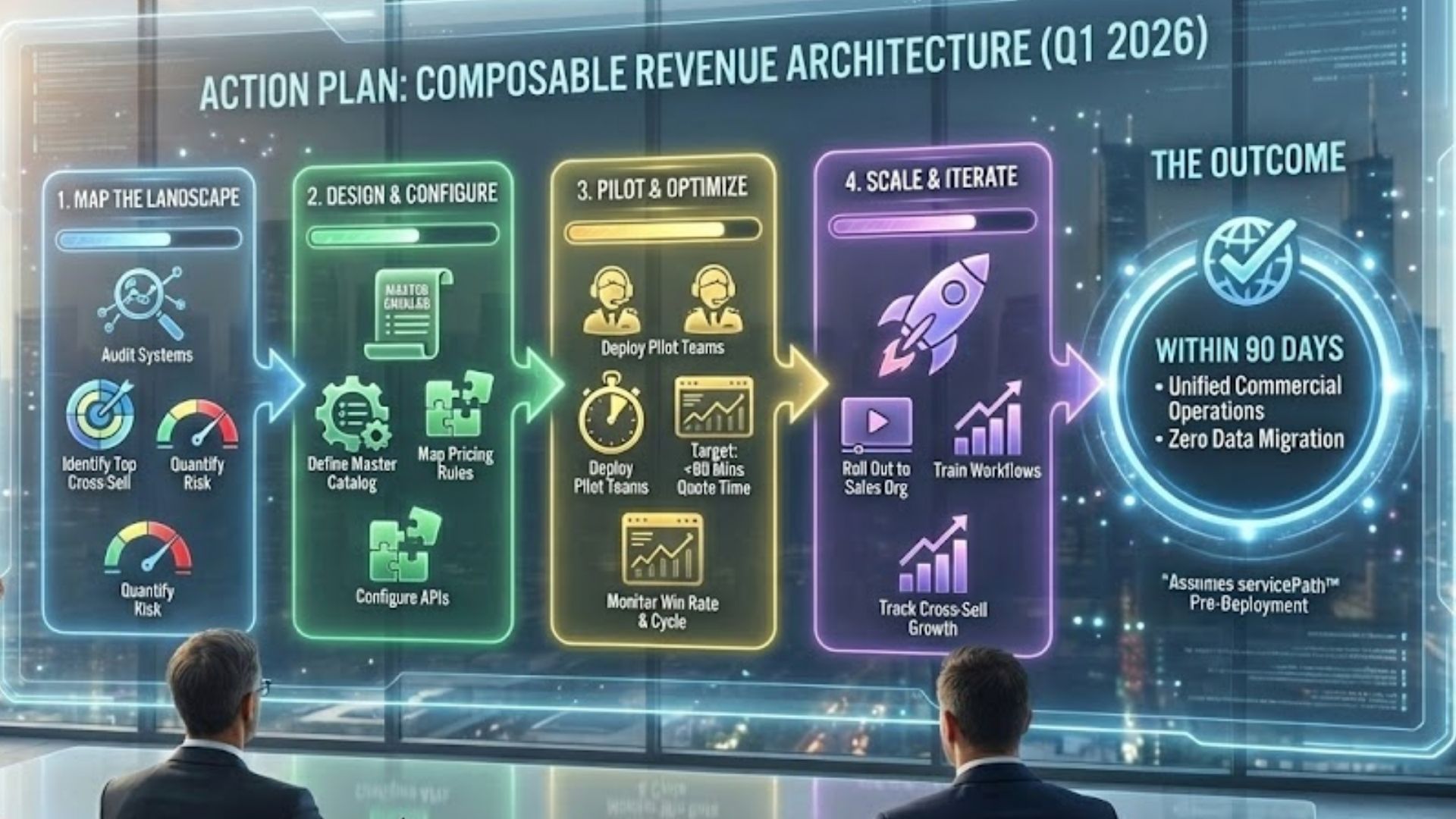 Companies that win in 2026 will embrace Composable Revenue Architecture. Moreover, they will activate cross-sell within 90 days,* govern AI pricing centrally, and collapse 18-month integration cycles to manageable phases.