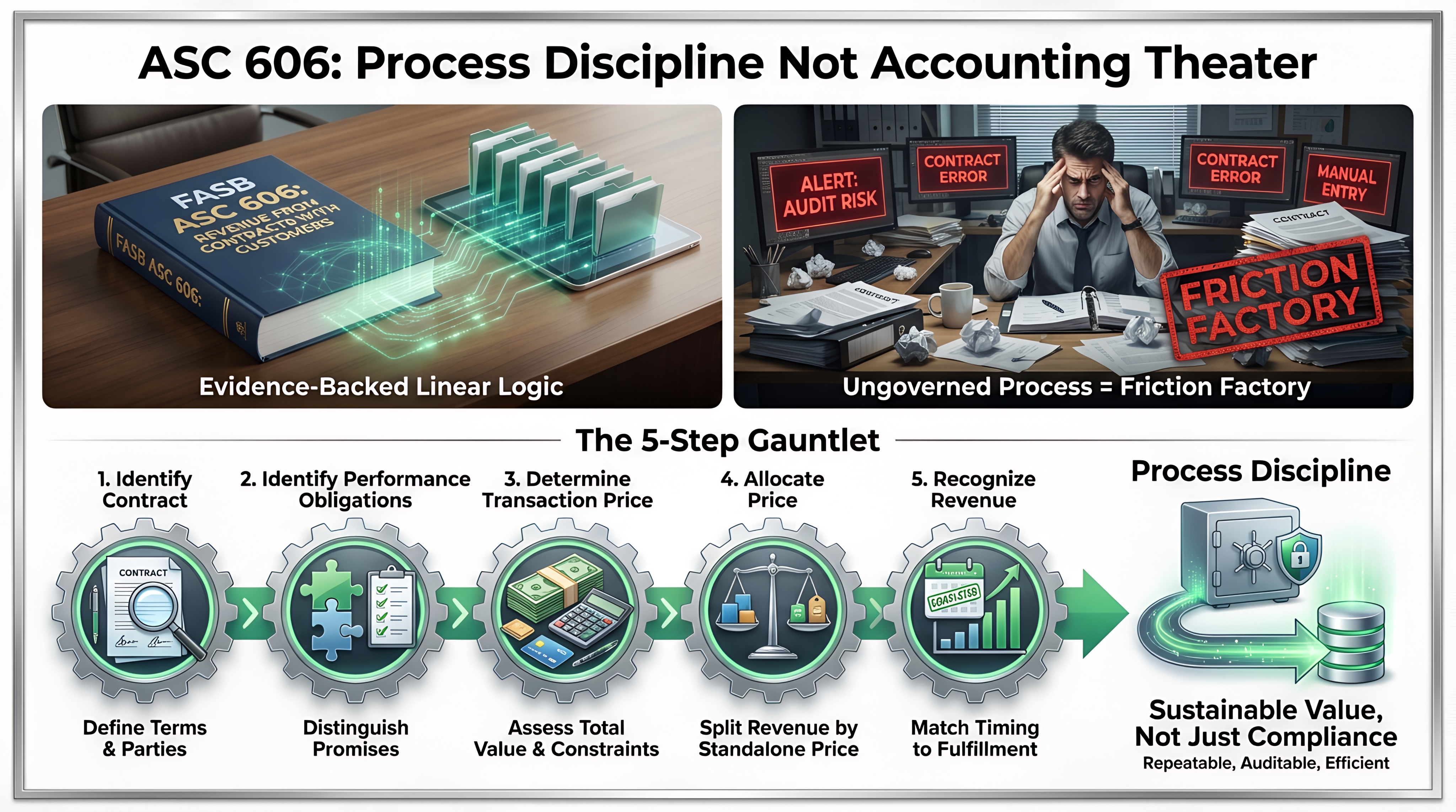 ASC 606 (Revenue from Contracts with Customers) is unforgiving. It is not just an accounting memo for the end of the quarter. It is process discipline.