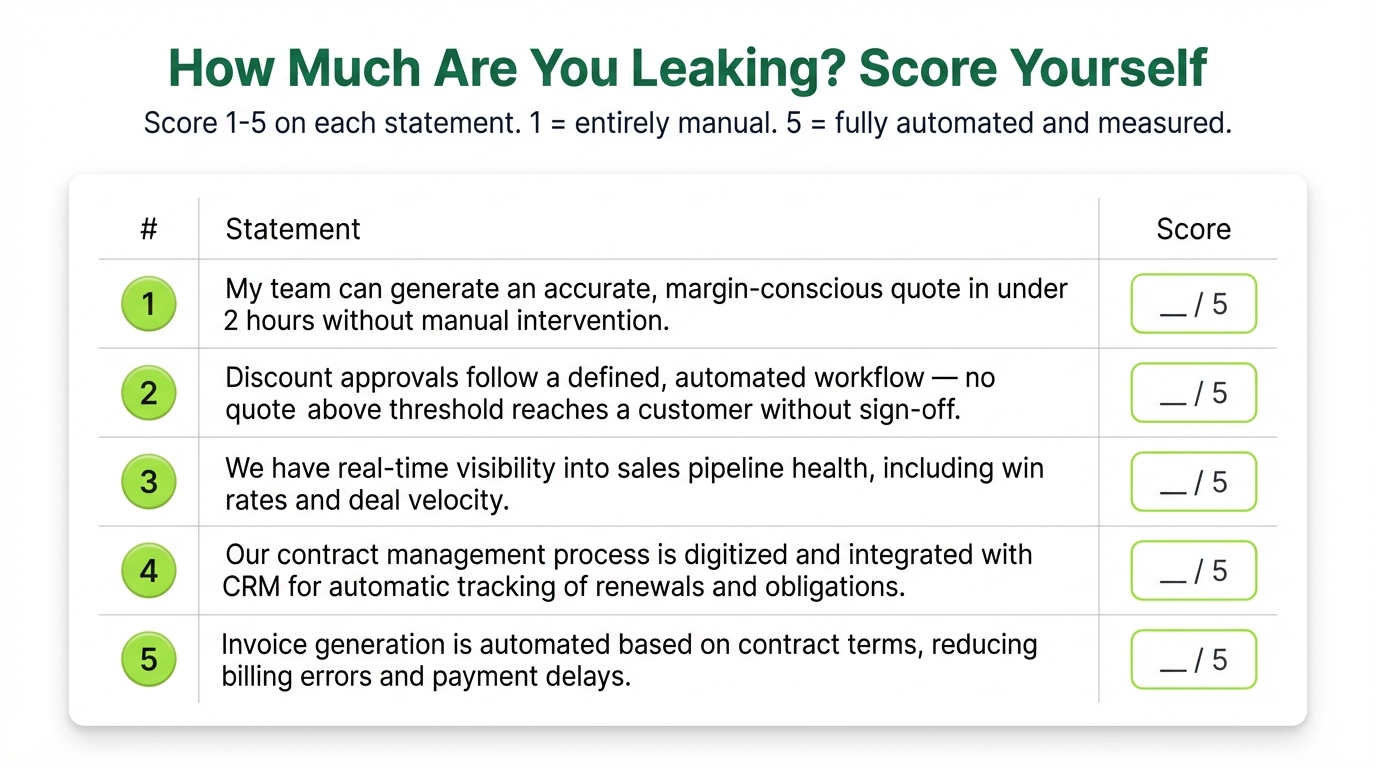The technology wasn’t the problem. The company skipped governance — they automated before they standardized. Define the rules first. Get executive alignment on margin floors and discount authority. Then embed them in the system. In that order.