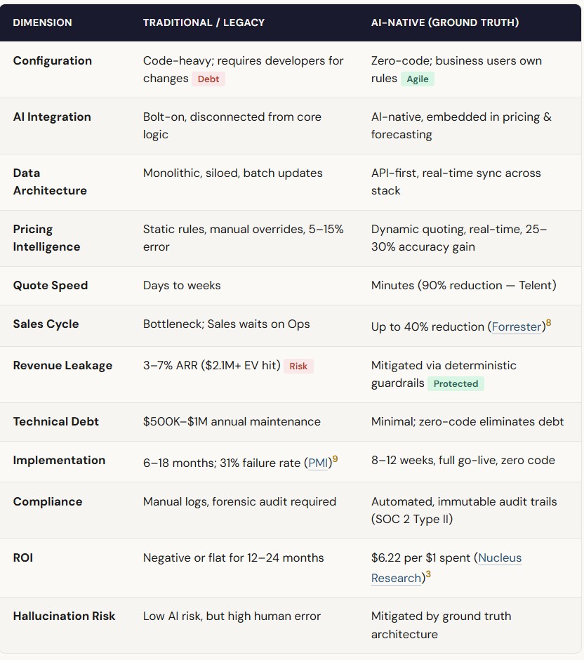 This friction creates what I call the Ground Truth Gap. In essence, companies are deploying generative AI on top of probabilistic data, hoping for deterministic results. It doesn’t work. To survive 2026, you need a system where the price in your quote-to-cash platform is a mathematical fact, not a statistical probability.