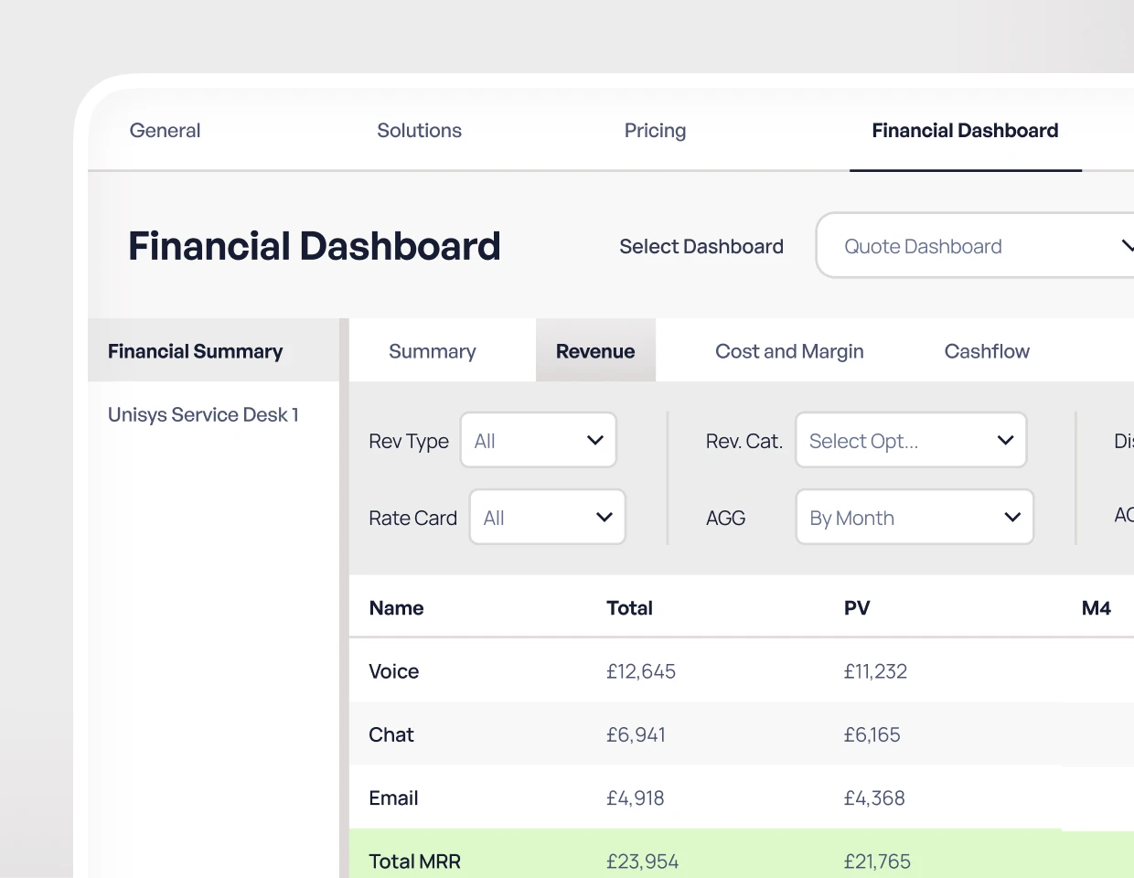 servicePath™ brings financial visibility into deal design so leadership, finance, and RevOps can evaluate margins, cash-flow timing, and pricing impact before contracts are finalized. This reduces risk by surfacing financial consequences early in the quote-to-cash process, aligning pricing decisions with governance, compliance, and measurable business outcomes.
